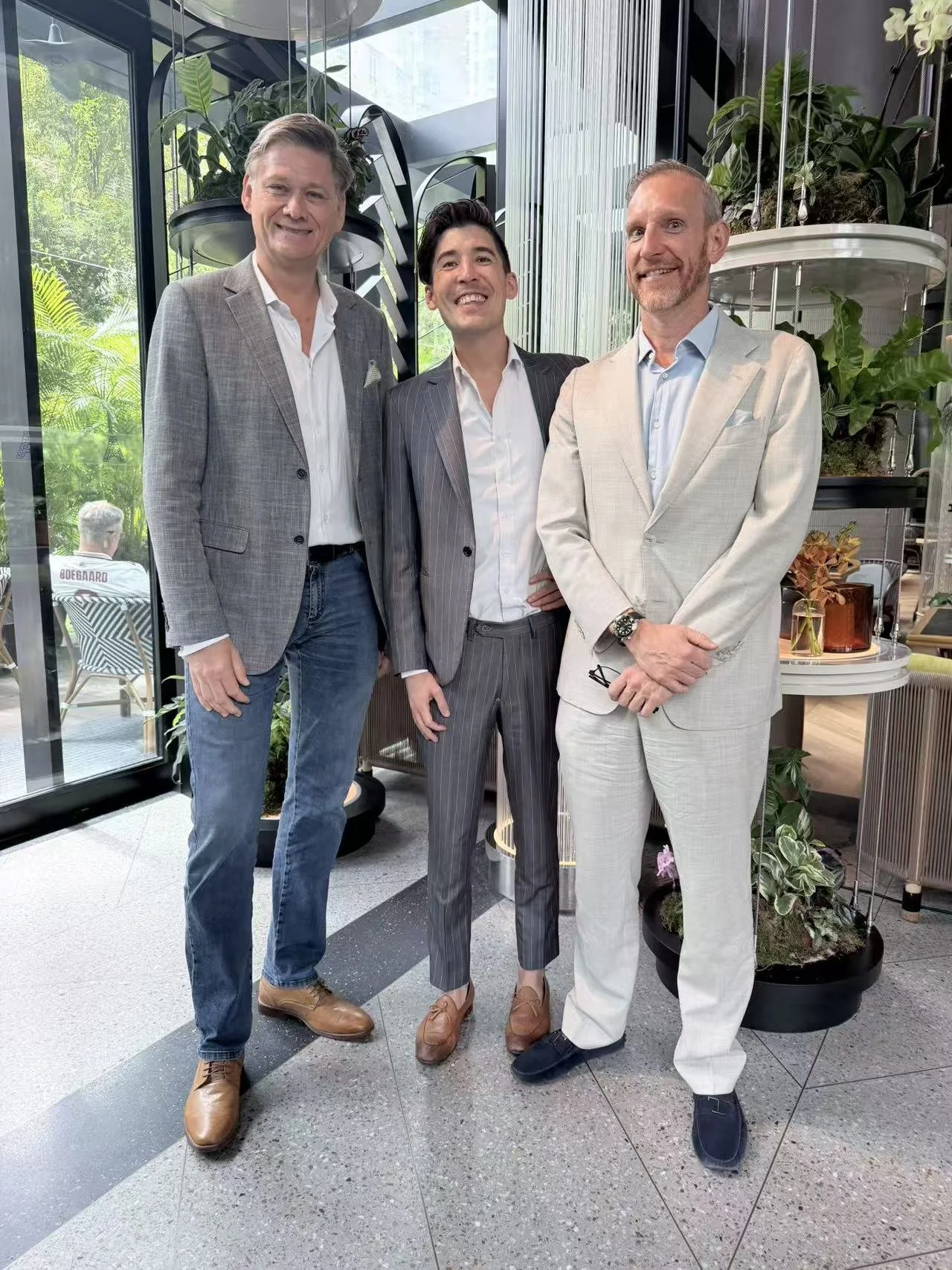 (L-R) Stéphane de Montgros; Jason Leung, General Manager at Pan Pacific Orchard Singapore; Simon Hansson Yu