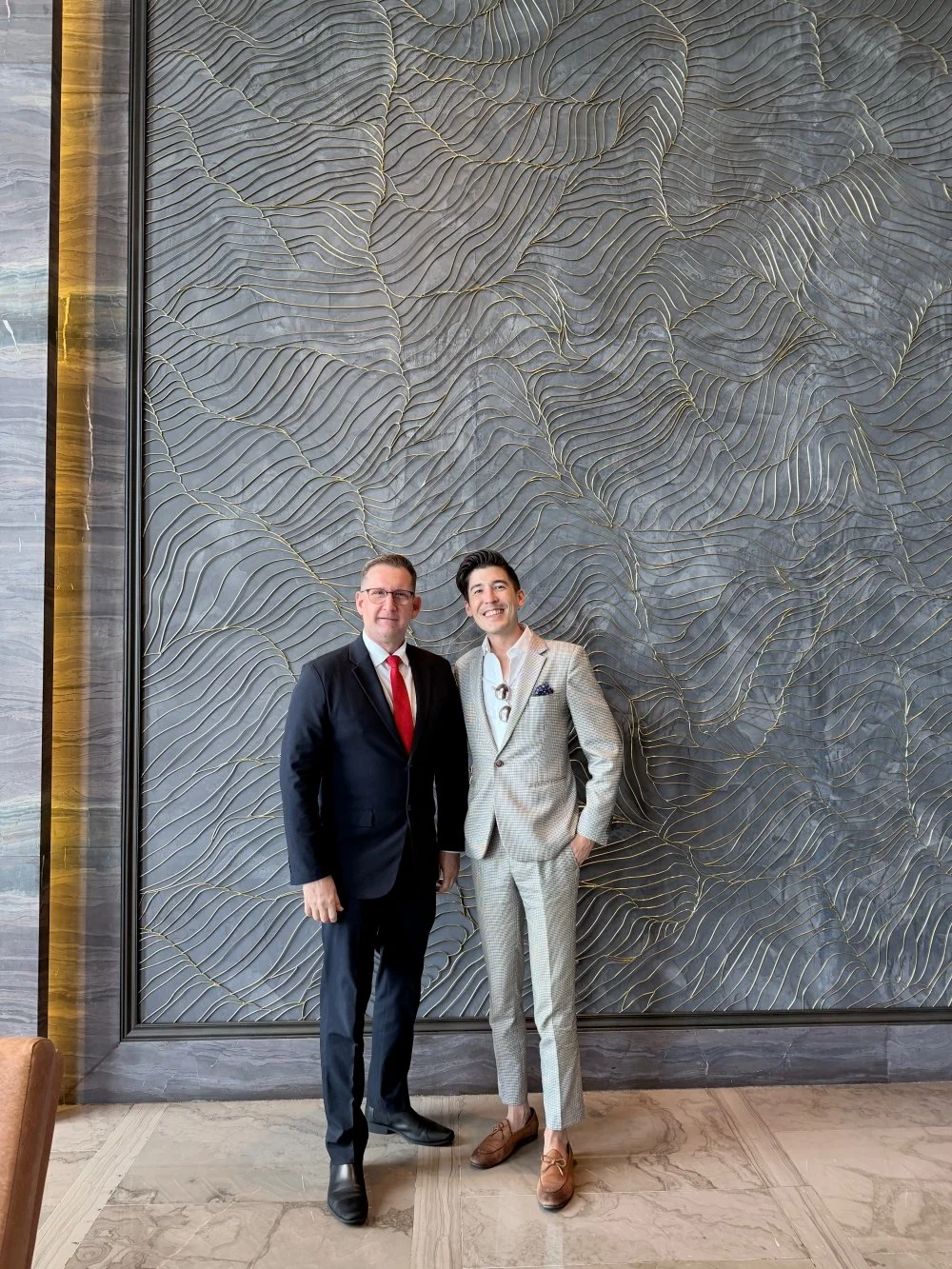 Bernd Schneider, Cluster General Manager, and Kimmy Gran Labayandoy, Cluster Director of Sales and Marketing, at Raffles Makati and Fairmont Makati